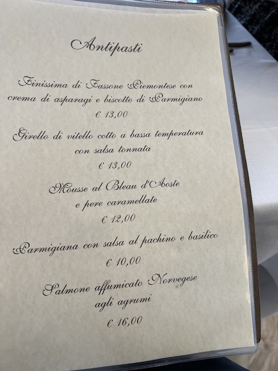 The restaurant also offers a selection of delightful dishes like vitel tonnato, plin al sugo d'arresto, and appetizing tasting menus designed for any occasion.